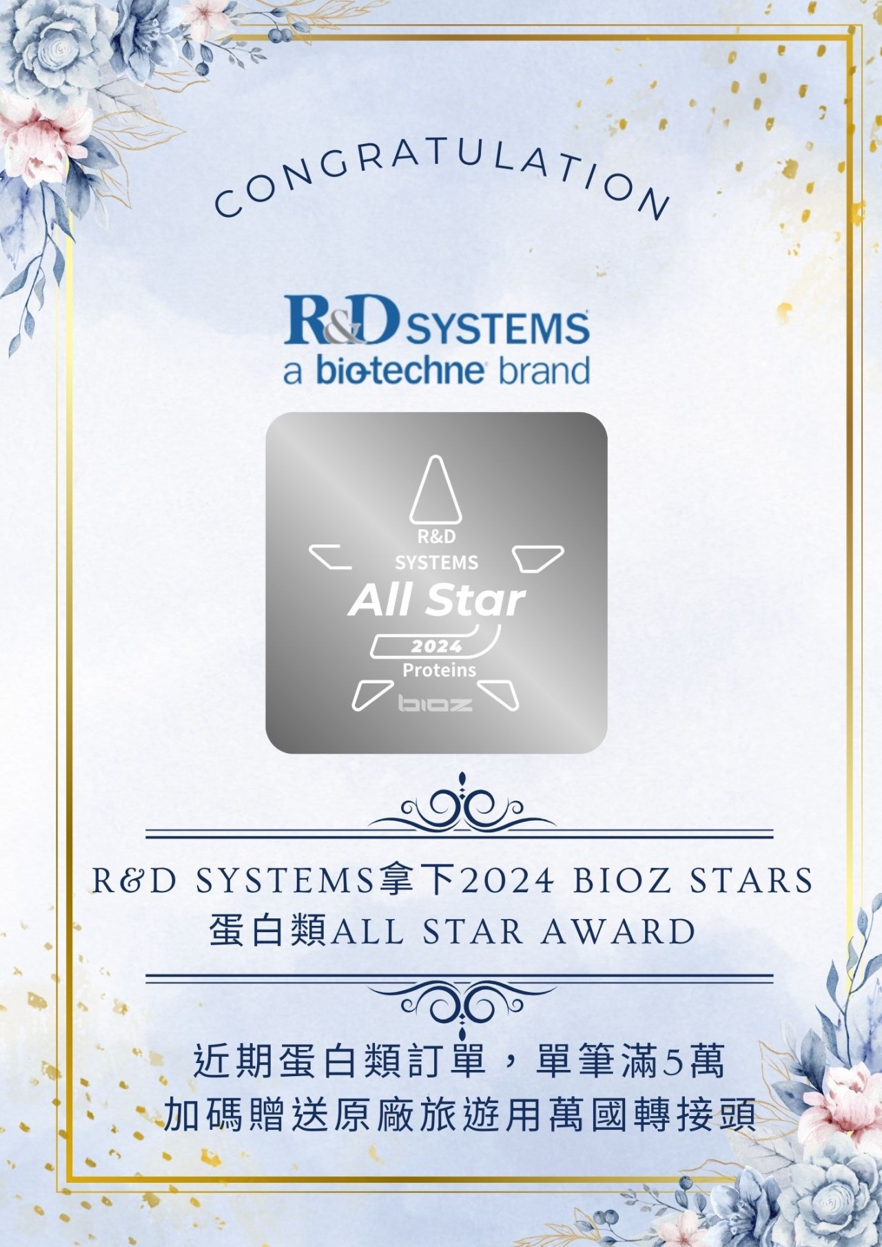 R&D SYSTEMS 榮獲 2024 BIOZ STARS 蛋白類 ALL STAR AWARD !!